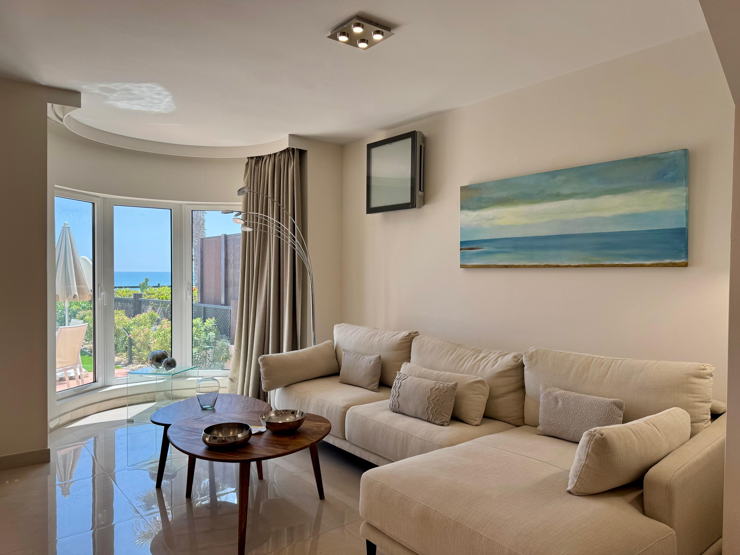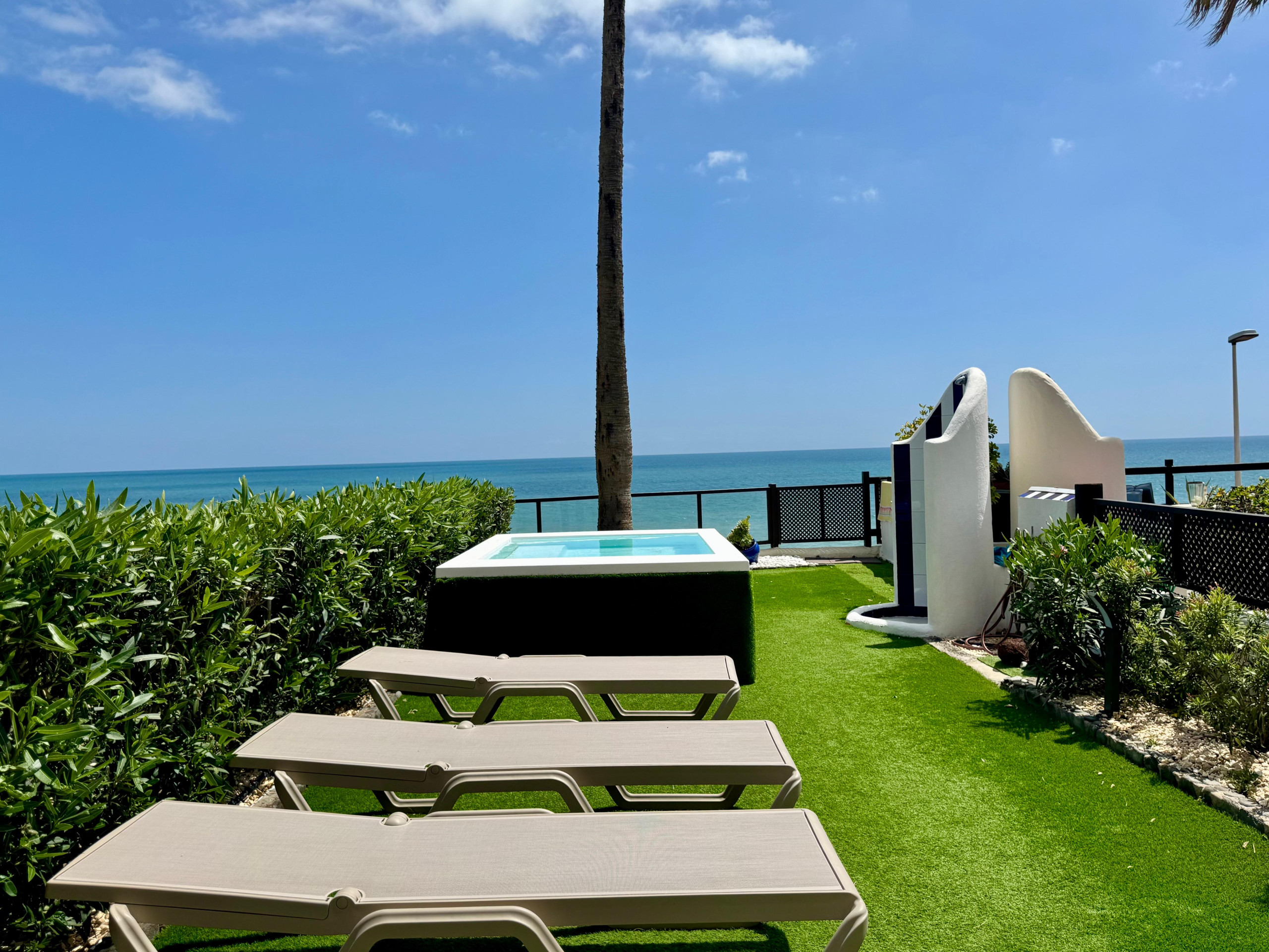 Alojamiento de 280 m², situado en primera línea de playa, con vistas al mar y al jardín.