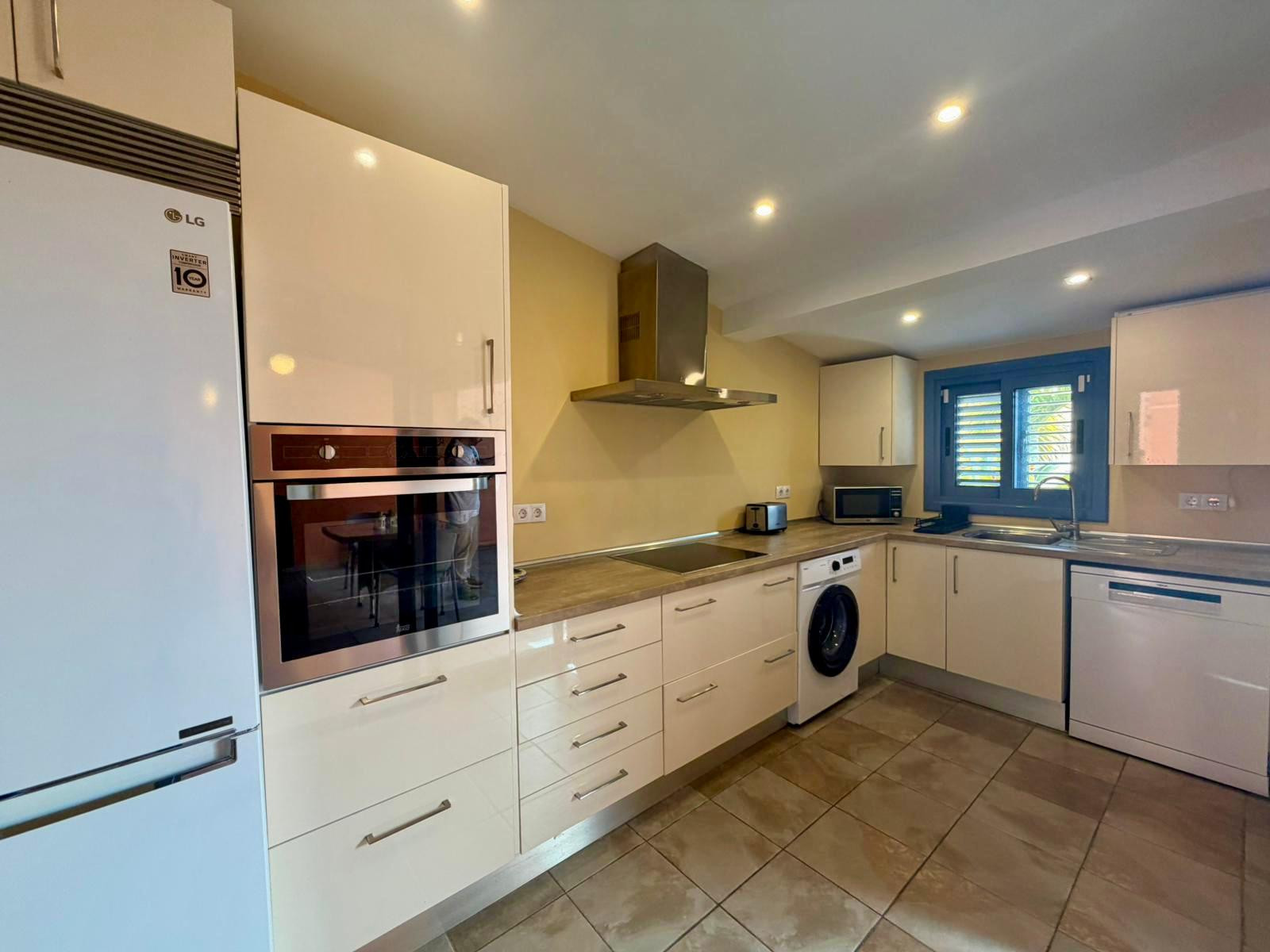The accommodation is equipped with the following items: garden, garden furniture, fenced garden, 40 m² terrace, washing machine, iron, internet (Wi-Fi), hair dryer, balcony, childrens area, communal swimming pool, open-air parking the same building, 1 fan, 1 TV.